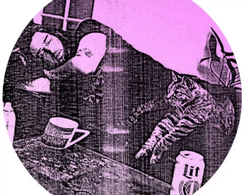 Sometimes the best art holds a mirror to our ugliness—and in that ugliness we see beauty. Becky DiGiglio and Justin Pearson’s collaborative art book, Born Upside Down, pairs photography (DiGiglio’s) and caption writing (Pearson’s) to reveal the grime and rot of life in America. Flying saucers and corpse saviors are set alongside ghosted structures and crumbling wasteland. These blasted-out desert towns, decaying religious monuments, and haunted statues feel like life in Trump’s America—precarious, faulty, gothic, and doomed.