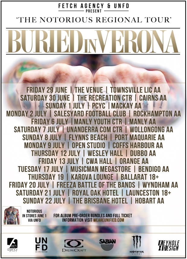 BURIED IN VERONA will be releasing their new album entitled “Notorious” on June 1, 2012. The band has just premiered a video for their song “Four Years” and unveiled their June and July tour dates in support of the outing.