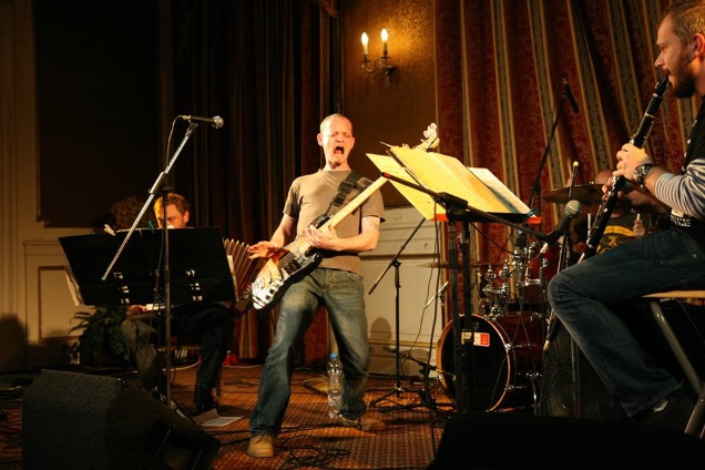 I took 3 instruments – bass guitar, clarinet that sounds like bass and drums , which can also be called a bass instrument, and l launched them in to a small space, not leaving them room to breathe. The constant counterpoint in a low register that doesn’t allow them any movement, everything mixing into an enormous lump of sound. Obviously, I comprehended the fact that we would bump into a huge difficulties when we’ll start practicing. At first, no one understood what going on. It took a while to learn how to place the sound in a way it would allow movement for that lump. In fact we’re still learning. About the experimental – I don’t know. Perhaps there is a dose of experiment in it.