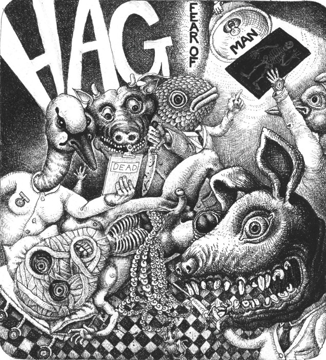 Teaming up once again with Part Chimp’s Tim Cedar at South London’s Dropout Studios, Fear Of Man crawls out over nine hefty chunks of grinding, booze-fuelled stabs of rock‘n’roll at its most primal. An obvious love affair with the likes of Melvins, Harvey Milk and High On Fire resonates strongly throughout as they wear those influences proudly on their collective sleeves; from the opening menace and to-the-death-fight of title track ‘Fear Of Man’, to the feverish and relentless bouts of ferocity on ‘Kingdom-O’ and ‘White Lion’. HAG makes no bones about their love of breaking them. From guitarist/singer Ian Baigent’s burning vocals, to the unwavering, watertight rhythms that bump proverbial uglies between the bass of Robin Freeman and drums of Tamas Kiss, HAG drag alarming amounts of pleasure from the unceremonious fucking of eardrums.