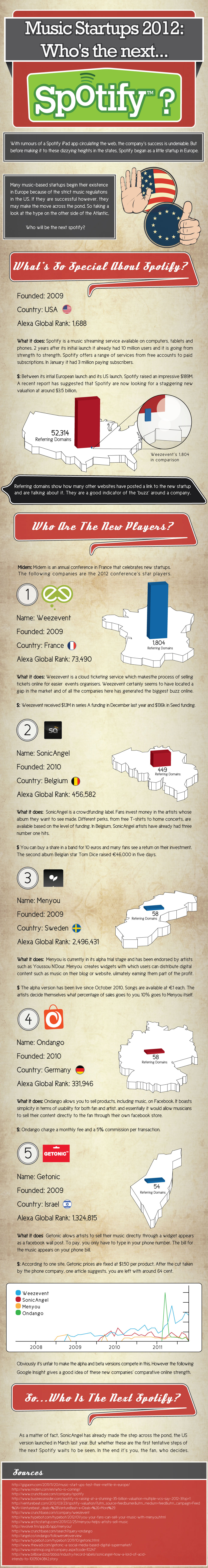 The music industry is now so much different than it was a few years ago. This created a perfect place for online music-related businesses. Which up-and-coming online music services do you need to know about? Clickitticket.com introduces you Spotify, Weezevent, Sonic Angel, Menyou and Ondango.