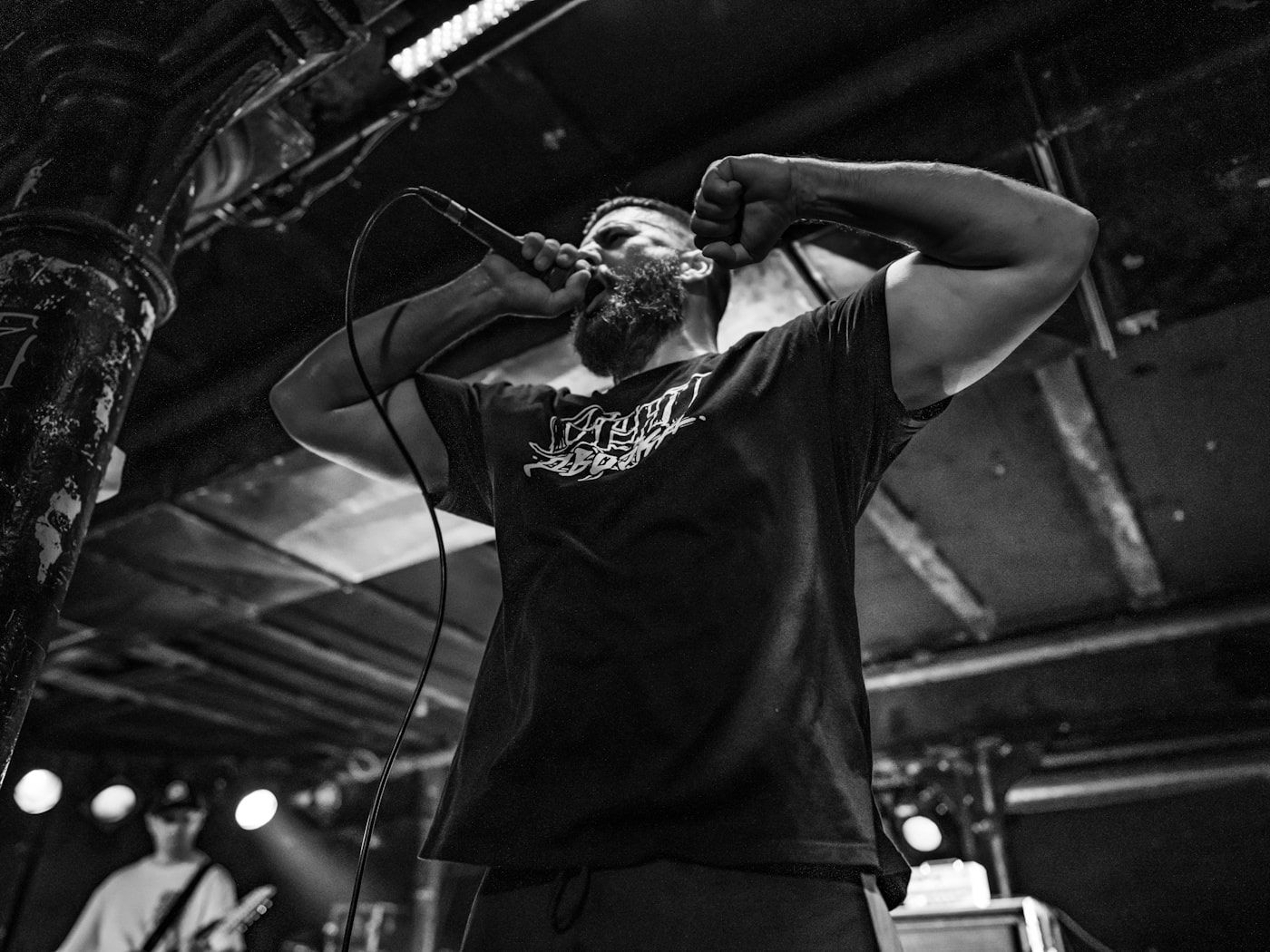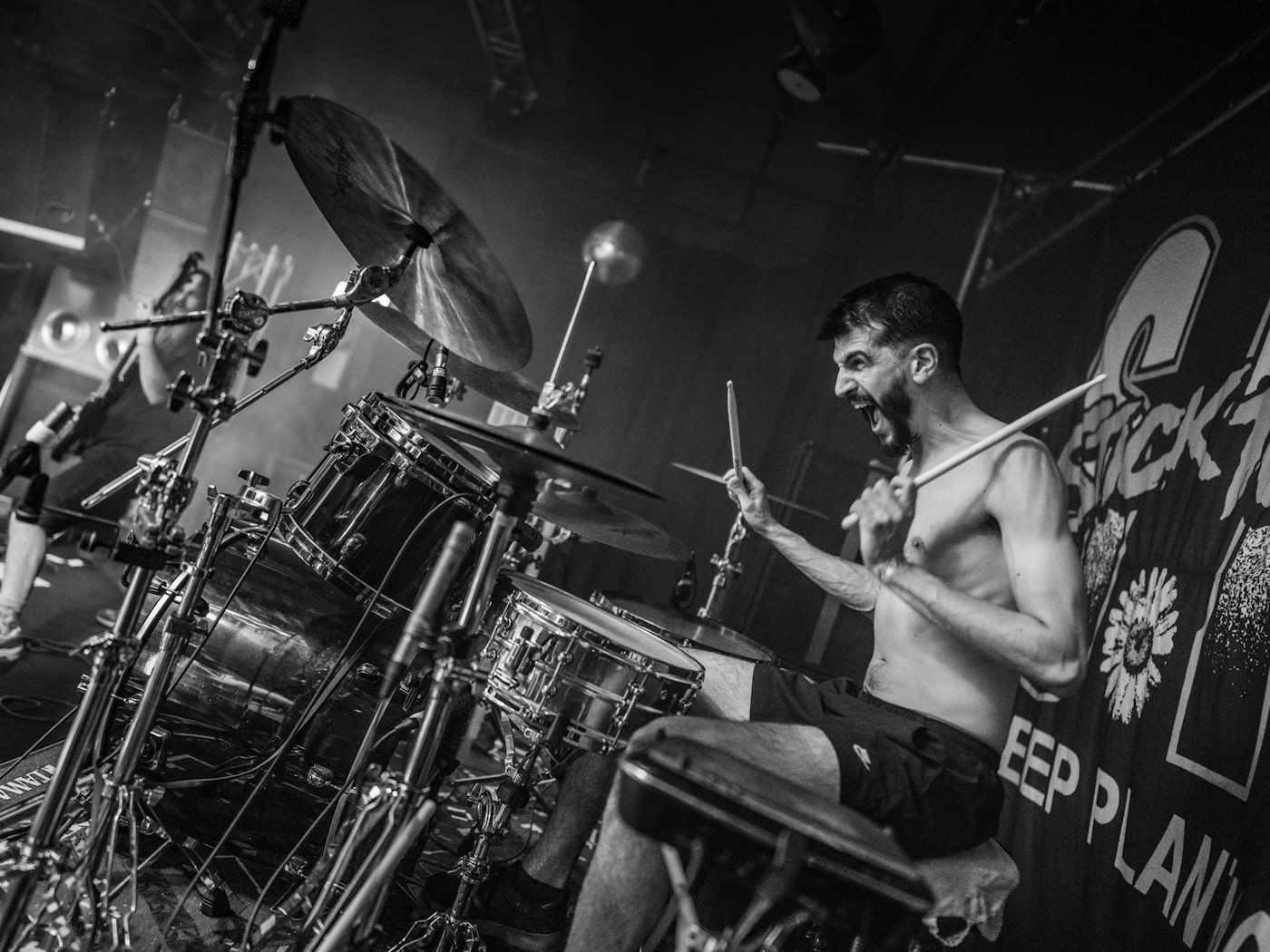 From song to song, there were 2-step, mosh, stage dives, while we catch a glimpse of a guy trying to tear down a pillar in a rush of emotions… madness! Despite the injured leg, Petar jumps and runs across the stage with Piranha, who goes from end to end of the stage as if shooting photons of energy from his silver saber, Anton calls for a circle pit and swings his hair like Samson, and Vanja literally nails those drums, then stands up as if calling for a fight, then nails them again. What a show! We enjoyed it immensely.