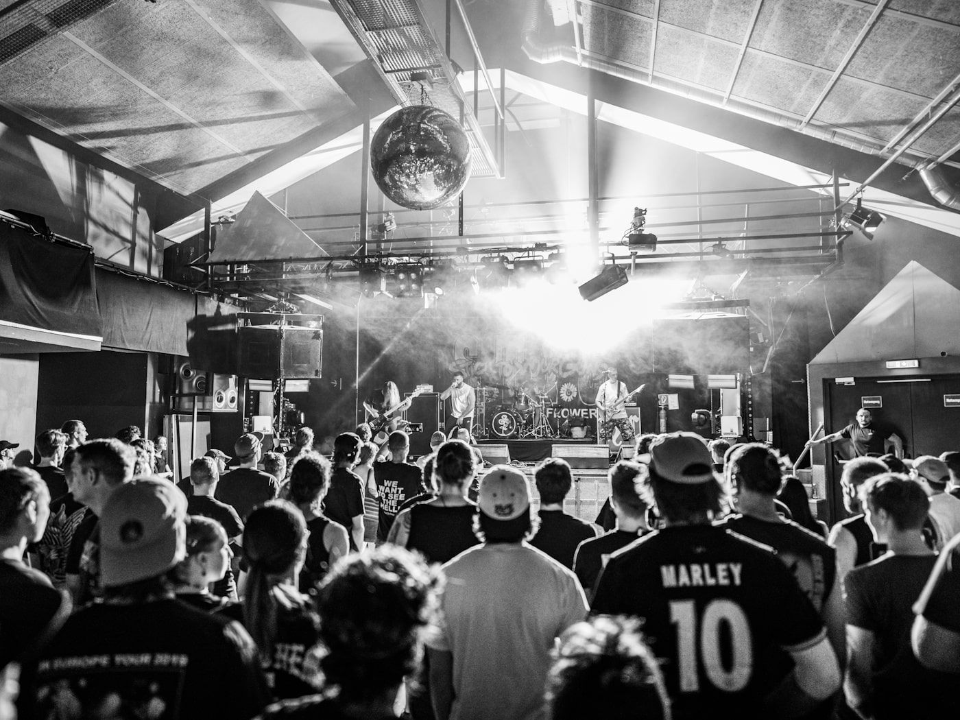 We finish the concert with a load of ice on our muscles exactly in the backstage area, which, judging by the graffiti on the walls, remembers visits from the more modern hc metal crew – Architects, While She Sleeps, LANDMVRKS, Deez Nuts, but also legends like Strung Out and No Use For A Name. At some point, the guitar player from Paleface Swiss enters the room with his family and we chat about vine. Imagine that?!