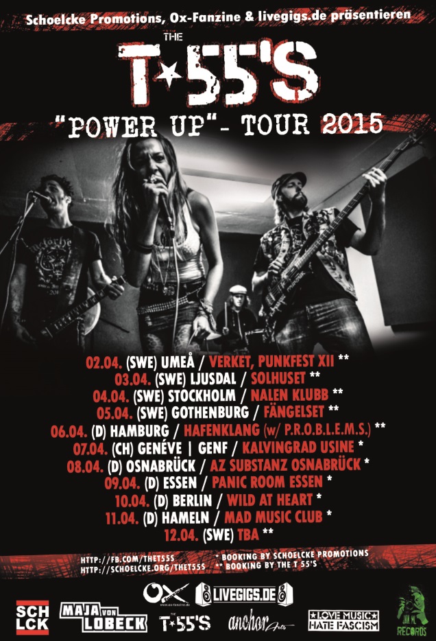 THE T-55’S are going on a tour of Sweden, Germany and Switzerland, starting with a gig at the Umeå Punkfest XII festival on April 2nd! See the details now and get ready for some serious rampaging with a solid dose of straight up punk ‘n’ roll! Their high energy performances are infectious!