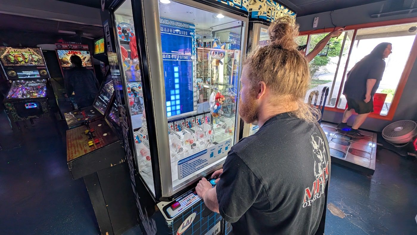We met up with our friend Matt from the band Dream’s End in Corpus. He got us free food at his job and it was sick. We got way too much pizza. The show was very late, so we decided to go kill some time at the arcade.