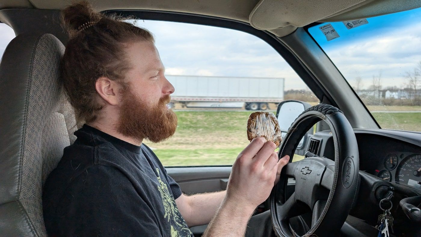 Around 1am, Jim realized he left his backpack at Healer. Luckily, the person who ran sound, Morgan, found it and met up with us at a BP on our way out of Indiana. That dude rocks. We then got coffee and Culver’s, and we smashed those burgers real quick. Unfortunately, they didnt know how to spell “Ethan” correctly.