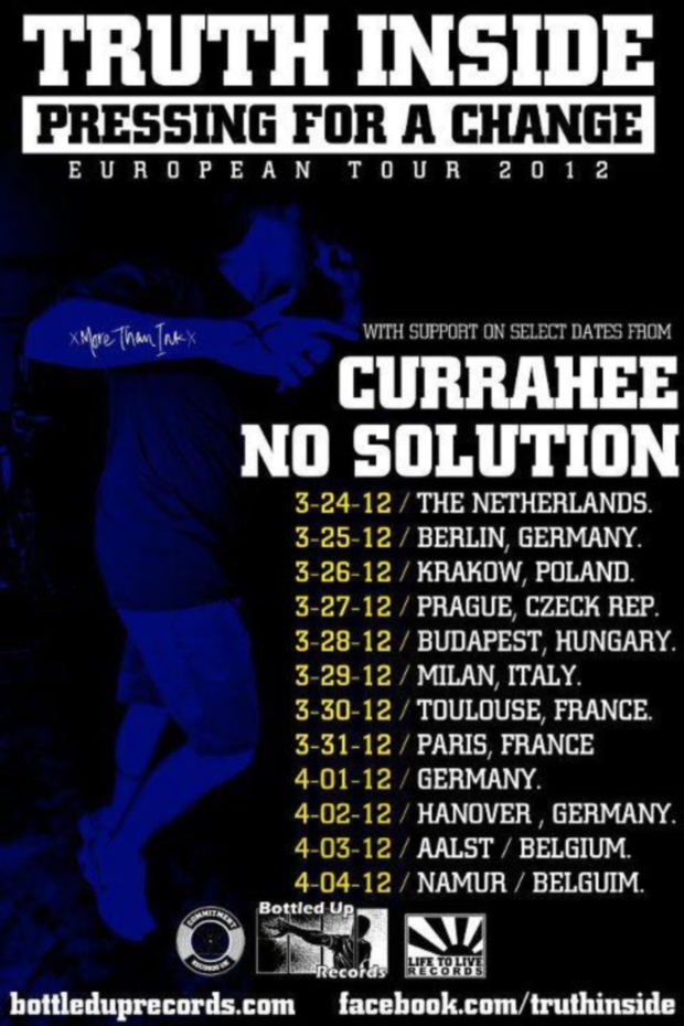 Florida youth crew hardcore band TRUTH INSIDE will be touring Europe with Nantes, France’s NO SOLUTION and UKs xCURRAHEEx!